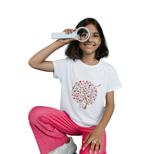 Camiseta Infantil Estampa Árvore com mensagem de Amélia Rodrigues